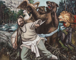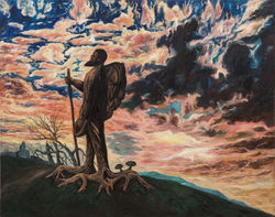 ![]() 斜阳 160 x 200 cm 布面油画 2018 | ![]() 龙心虎威 80 x 120 cm 布面油画 2019 | ![]() 捕鲸者 300 x 400 cm 布面油画 2018 |