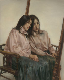 ![]() 庞茂琨 过客之五 160 x 150 cm 布面油画 2014 | ![]() 庞茂琨 镜前女孩 120 x 100 cm 布面油画 2016 | ![]() 庞茂琨 拿苹果的女孩 80 x 65 cm 布面油画 2014 |