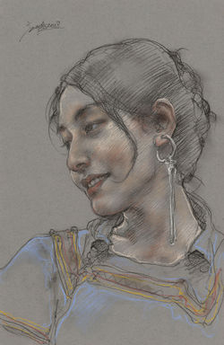 ![]() 庞茂琨 彝女 2018 之一 50 x 32.5 cm 纸本色粉 2018 | ![]() 庞茂琨 彝女 2018 之二 50 x 32.5 cm 纸本色粉 2018 | ![]() 庞茂琨 小达 55 x 37.5 cm 纸本色粉 2020 |